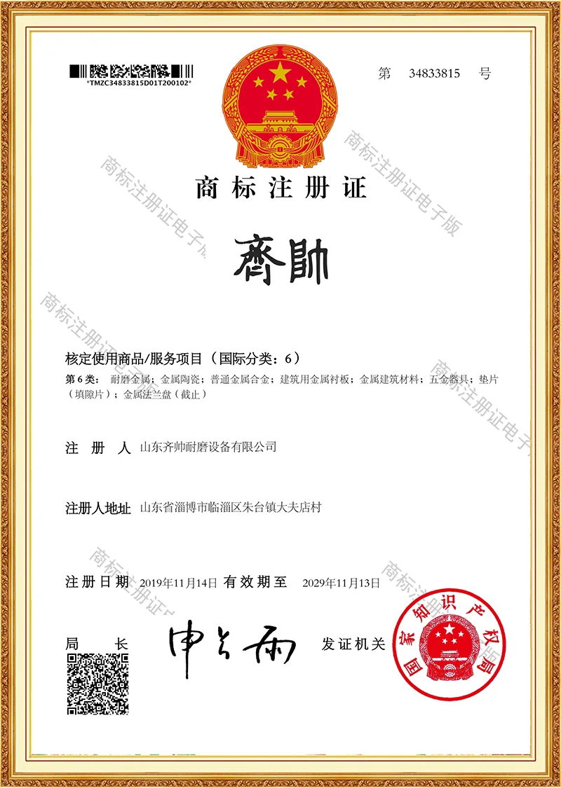Công ty được chứng nhận ISO9001 và đã được trao nhiều bằng sáng chế về mô hình tiện ích, được công nhận về sức mạnh công nghệ. Chúng tôi sở hữu nhà máy riêng và đã tham gia sâu vào ngành sản phẩm chống mài mòn trong hơn một thập kỷ.
