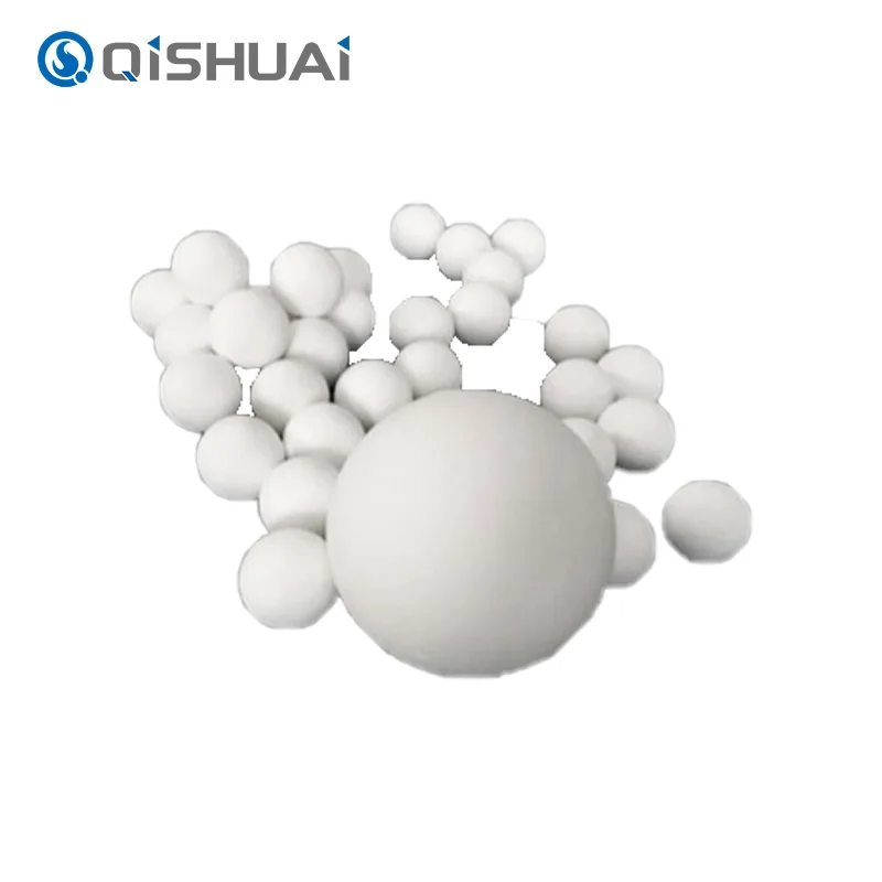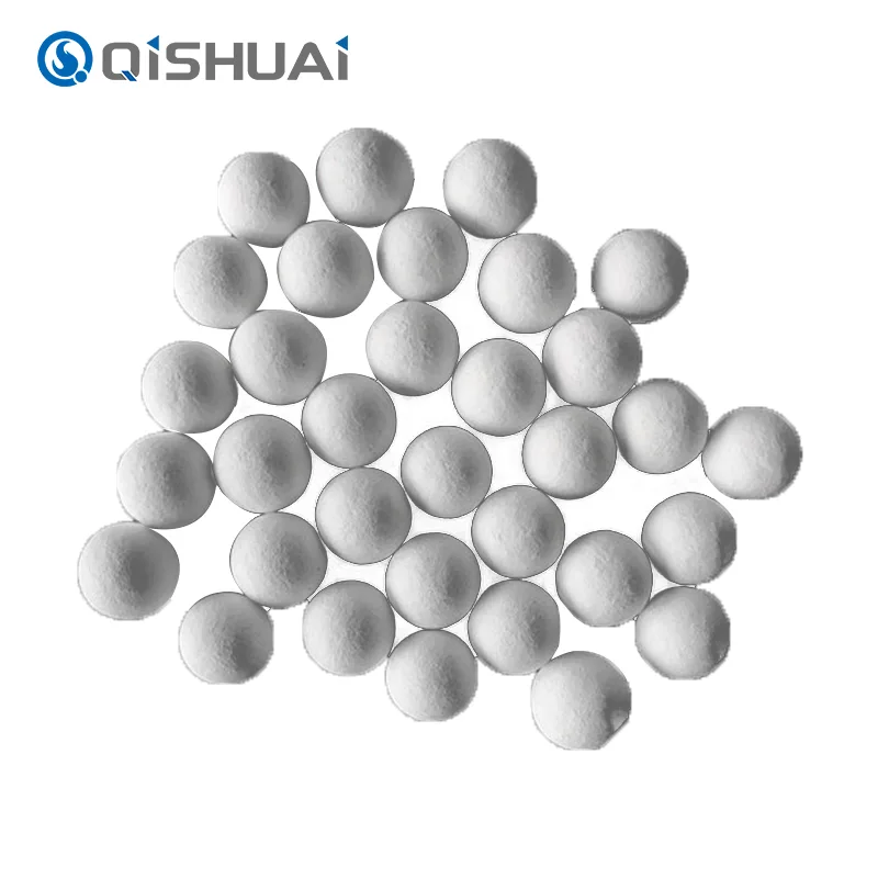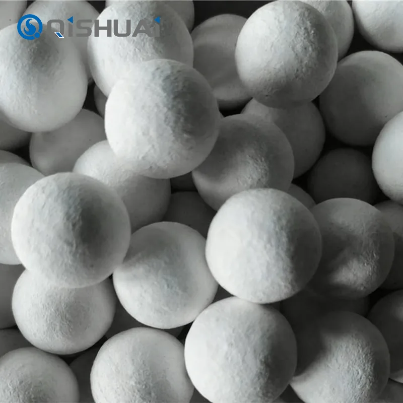 Bóng alumina chất lượng cao do Shandong Qishuai sản xuất, tất cả đều có độ cứng rất cao, ổn định hóa học rất tốt và khả năng chịu nhiệt cao (1600°C). Có nhiều thông số kỹ thuật khác nhau với kích thước hạt từ 0,5 mm đến 10 mm. Các ứng dụng chính bao gồm mài và đánh bóng, chất mang xúc tác, chất hấp phụ, vật liệu chịu lửa nhiệt độ cao, v.v.